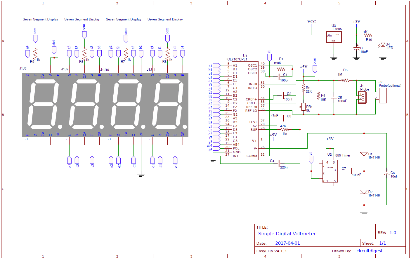 Simple Digital Voltmeter by Circuitdigest