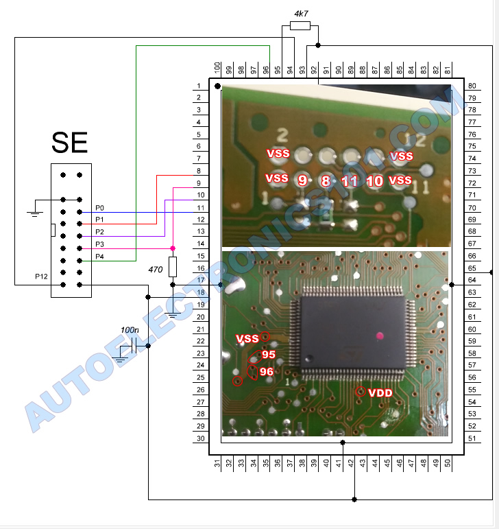 In-Circuit connections for reading & writing the ST92F120 mcu found inside the instrument cluster of the 2002-2003 Dodge Ram trucks.