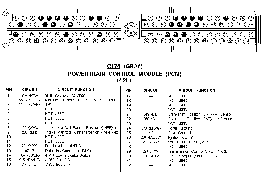Connector C174a 4.2L PCM